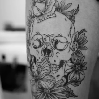 Fasciné par les techniques ancestrales et l’aspect artisanal que l’on retrouve au Japon, en Thaïlande ou encore en Polynésie, c’est en puisant aux racines de la discipline que j’ai trouvé ma voie, celle du handpoke. Melissa tatoue exclusivement de cette manière depuis 2020.