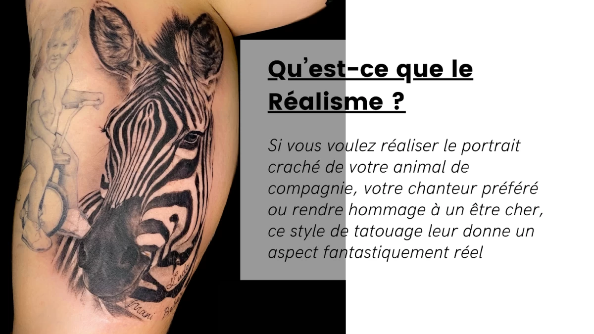 Si vous voulez réaliser le portrait craché de votre animal de compagnie, votre chanteur préféré ou rendre hommage à un être cher, ce style de tatouage leur donne un aspect fantastiquement réel. En termes d'évolution, ce style est l'un des plus récents. Mais il est aussi extrêmement populaire.